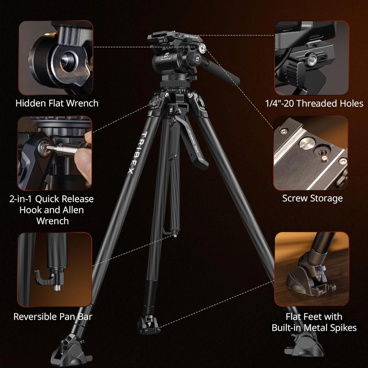 - Meet Various Terrains: The travel tripod also includes quick-release rubber feet with integrated spikes, just one-click to switch, allowing seamless adaptation to different terrains. 3 single tripod legs can achieve fast balance on uneven ground to provide flexible shooting, such as shooting on rocky ground, outdoor climbing.